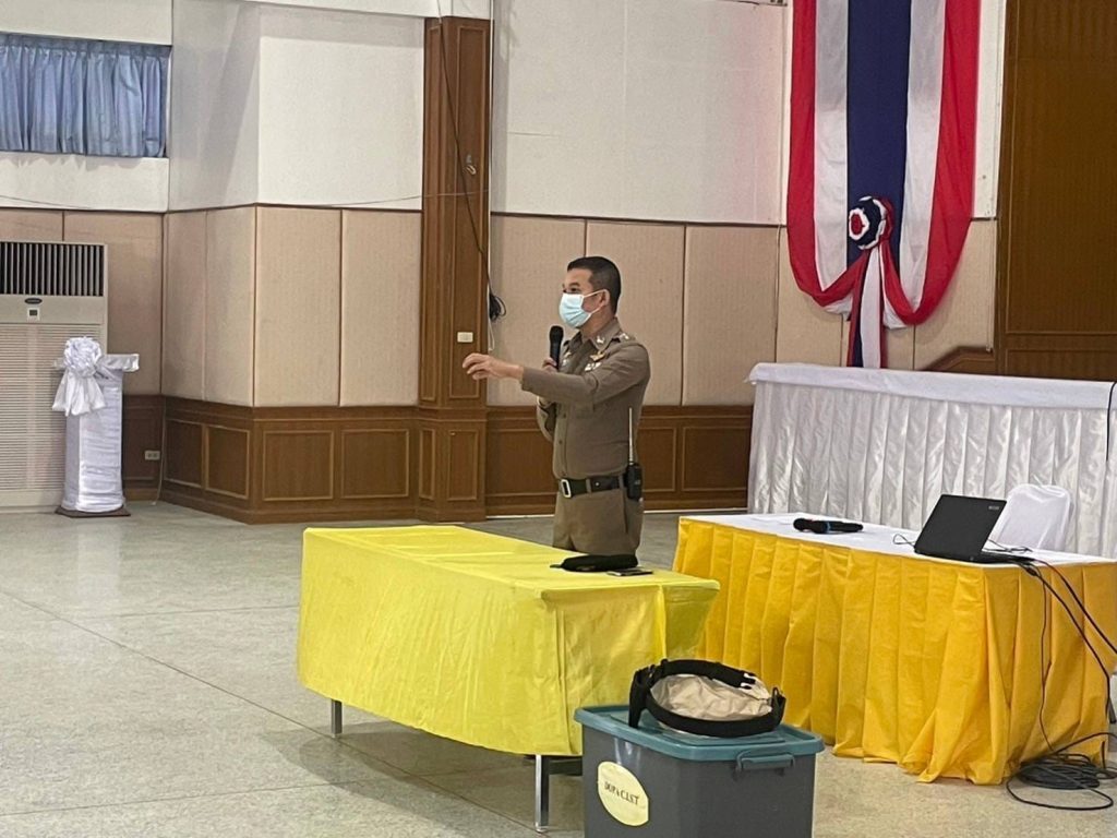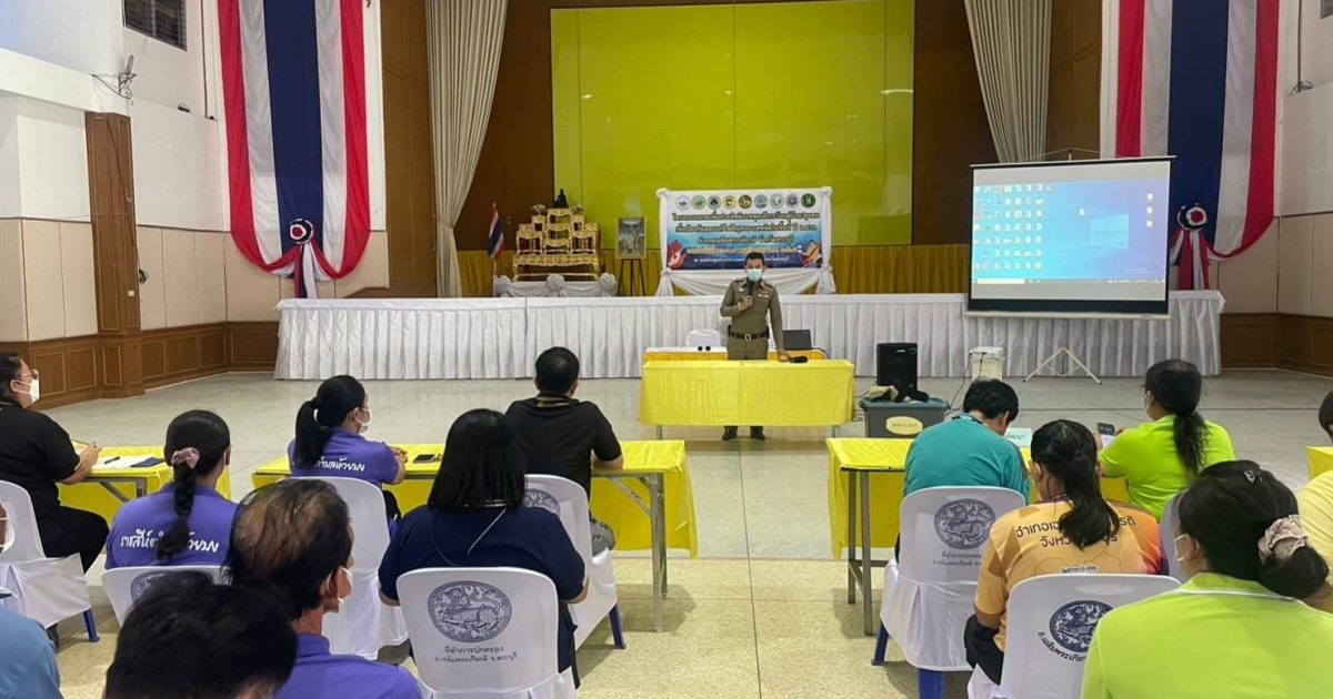 บรรยายให้ความรู้ว่าด้วยเรื่องยาเสพติดให้แก่ผู้เข้ารับการอบรมเพิ่มประสิทธิภาพชุดเฝ้าระวังหมู่บ้าน/ชุมชน เพื่อป้องกันและแก้ไขปัญหายาเสพติดในพื้นที่ ณ หอประชุมอำเภอเฉลิมพระเกียรติ จังหวัดสระบุรี
