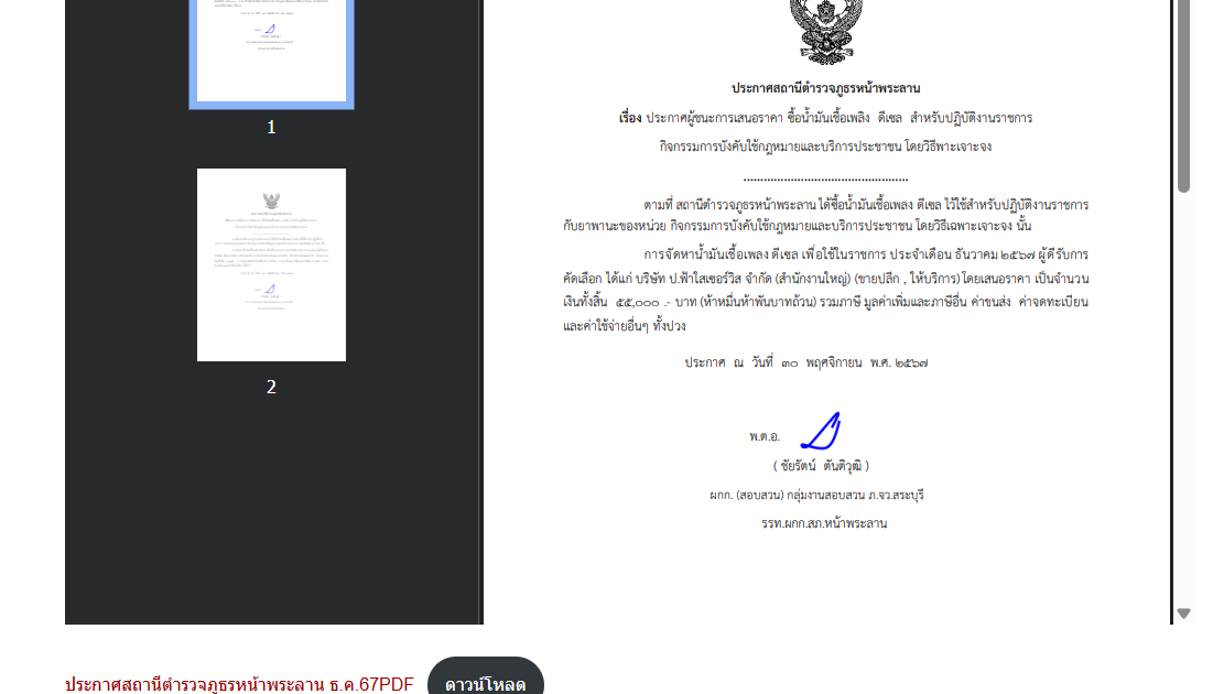 ประกาศผู้ชนะการเสนอราคา ซื้อน้ำมันเชื้อเพลิง เดือน ธันวาคม 2567
