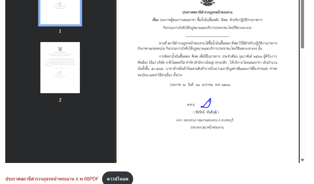 ประกาศผู้ชนะการเสนอราคา ซื้อน้ำมันเชื้อเพลิง เดือน กุมภาพันธ์ 2568