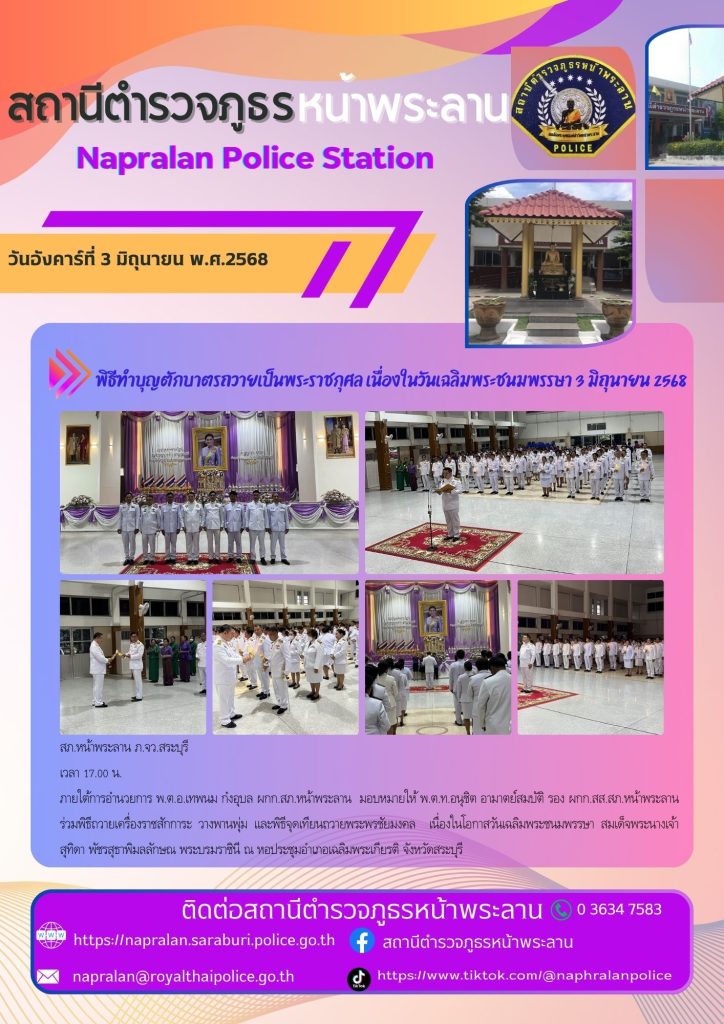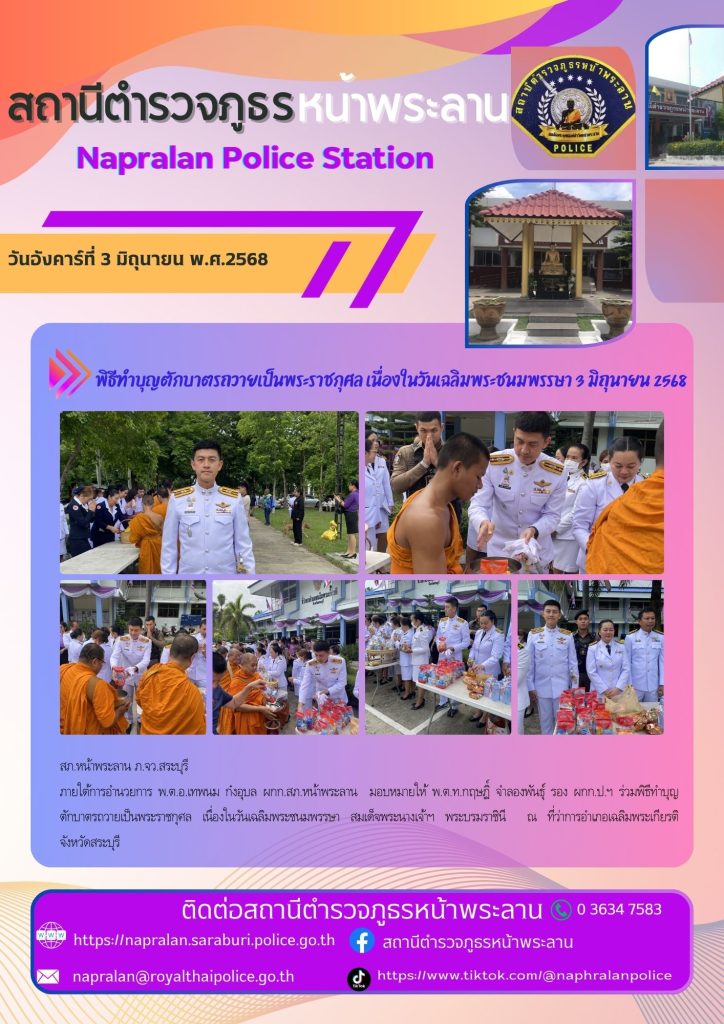 พิธีทำบุญตักบาตรถวายเป็นพระราชกุศล เนื่องในวันเฉลิมพระชนพรรษา 3 มิถุนายน 2568 4 มิถุนายน 2568 โดย admin / ข่าวประชาสัมพันธ์,ข่าวกิจกรรม,ข่าวประชาสัมพันธ์,ข่าวประชาสัมพันธ์,ข่าวฝากประชาสัมพันธ์,ข่าวภารกิจผู้บังคับบัญชา Post Views: 31 FacebookFacebookXXLINELine