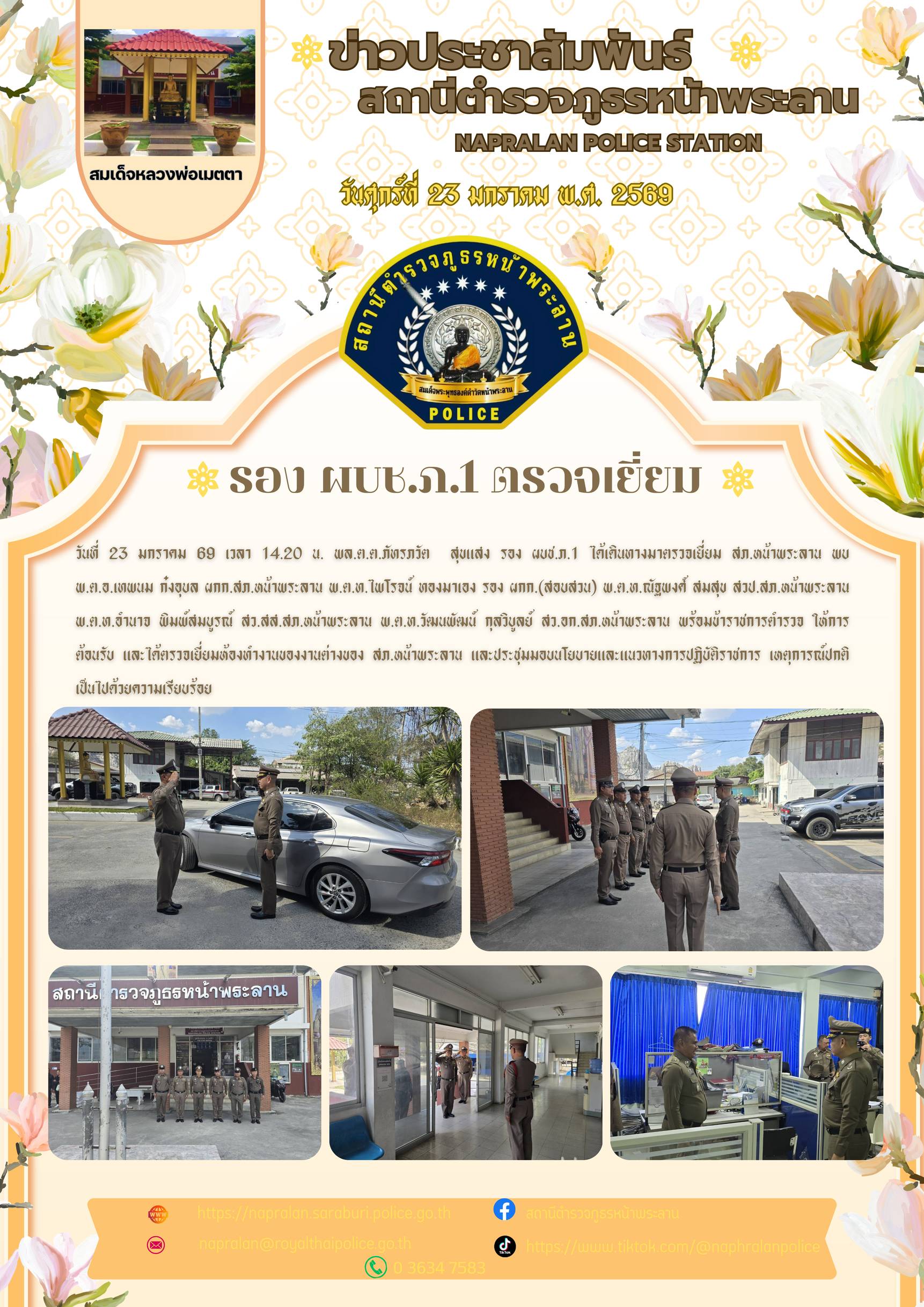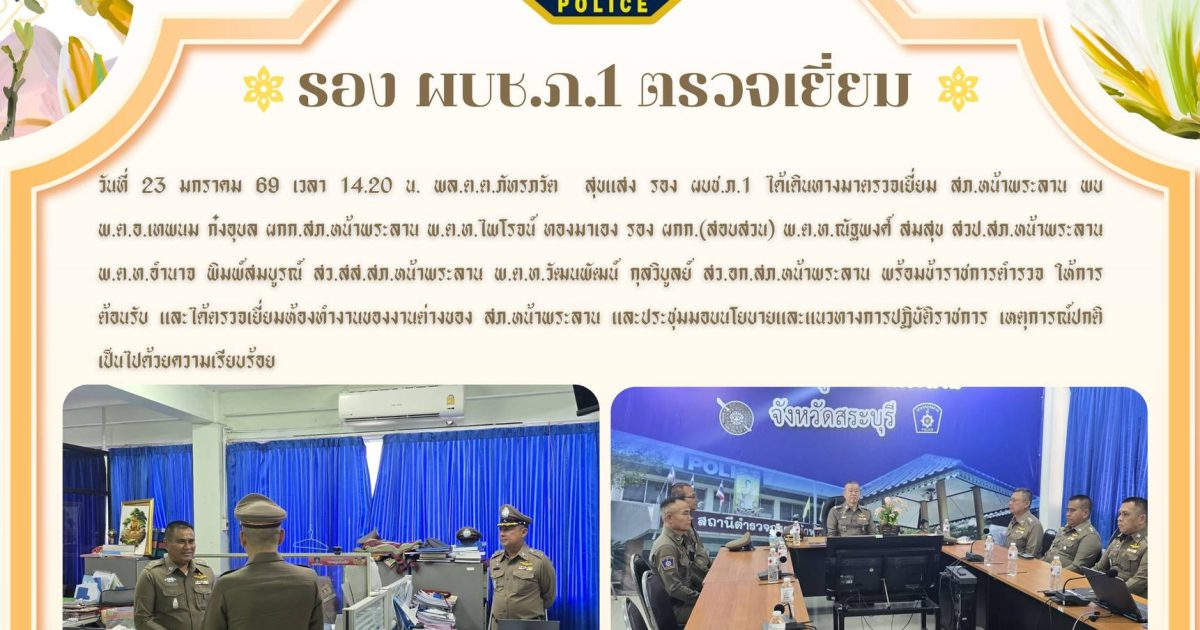 รอง ผบช.ภ.1 ได้เดินทางมาตรวจเยี่ยม สภ.หน้าพระลาน 26 มกราคม 2569 โดย admin / ข่าวประชาสัมพันธ์,ข่าวประชาสัมพันธ์,ข่าวฝากประชาสัมพันธ์,ข่าวภารกิจผู้บังคับบัญชา Post Views: 6 FacebookFacebookXXLINELine