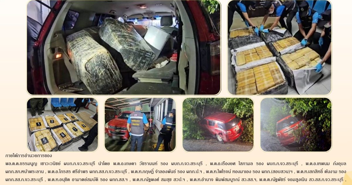 วันที่ 22 มิ.ย.68 เวลาประมาณ 22.25 น. ขณะ ร.ต.ต.วัชระ อ่อนตา รอง สว.(ป.)ฯ ปฏิบัติหน้าที่ร้อยเวร 2-0 พร้อมกำลังสายตรวจ ได้ขับขี่รถออกตรวจป้องกันเหตุอาชญากรรมในเขตพื้นที่ เมื่อมาถึงบริเวณโค้งเลิศจิต ถนนหน้าพระลาน-หนองจาน หมู่ที่ 8 ต.หน้าพระลาน อ.เฉลิมพระเกียรติ จ.สระบุรี ได้มีประชาชนเรียกให้หยุดรถและแจ้งว่าพบรถยนต์ประสบอุบัติเหตุบริเวณโค้งเลิศจิตดังกล่าว ร.ต.ท.วัชระฯ พร้อมกำลังจึงได้ไปตรวจสอบพบเป็น รถยนต์นั่งส่วนบุคคลไม่เกิน 7 คน หมายเลขทะเบียน 5กข 6837 กรุงเทพมหานคร ยี่ห้อ CHEVROLET รุ่น TRAILBLAZER SUV 2DR สีแดง เสียหลักชนกับขอบทาง จึงได้นำไฟฉายส่องผ่านกระจกดูภายในรถไม่พบผู้ขับขี่หรือผู้โดยสารอยู่ภายในรถหรือบริเวณที่เกิดเหตุ แต่พบภายในรถคล้ายมีสิ่งของผิดกฎหมายอยู่จึงได้แจ้ง ศูนย์วิทยุ สภ.หน้าพระลาน ให้ร้อยเวร 3-0 ร้อยเวร 4-0 ร้อยเวร 6-0 พร้อมอาสากู้ภัย เข้าปิดกั้นและตรวจสอบที่เกิดเหตุ พร้อมทั้งแจ้งผู้บังคับบัญชาตามลำดับชั้นให้ทราบและแจ้งเจ้าพนักงานตำรวจพิสูจน์หลักฐานเพื่อเข้าเก็บพยานหลักฐานในที่เกิดเหตุ ต่อมาได้รับแจ้งจากผู้บังคับบัญชาให้นำรถคันที่เกิดเหตุเข้ามายัง สภ.หน้าพระลาน เพื่อทำการให้เจ้าพนักงานตำรวจพิสูจน์หลักฐานตรวจเก็บพยานหลักฐาน ก่อนนำพยานหลักฐานที่ได้นำส่งพนักงานสอบสวนเพื่อดำเนินการตามกฎหมาย