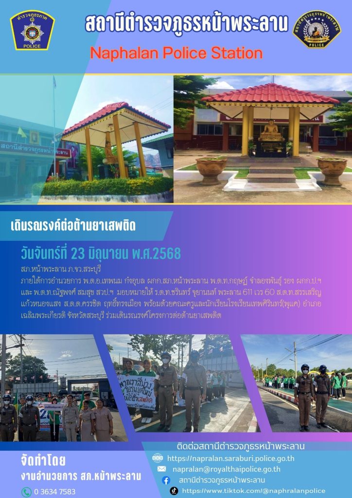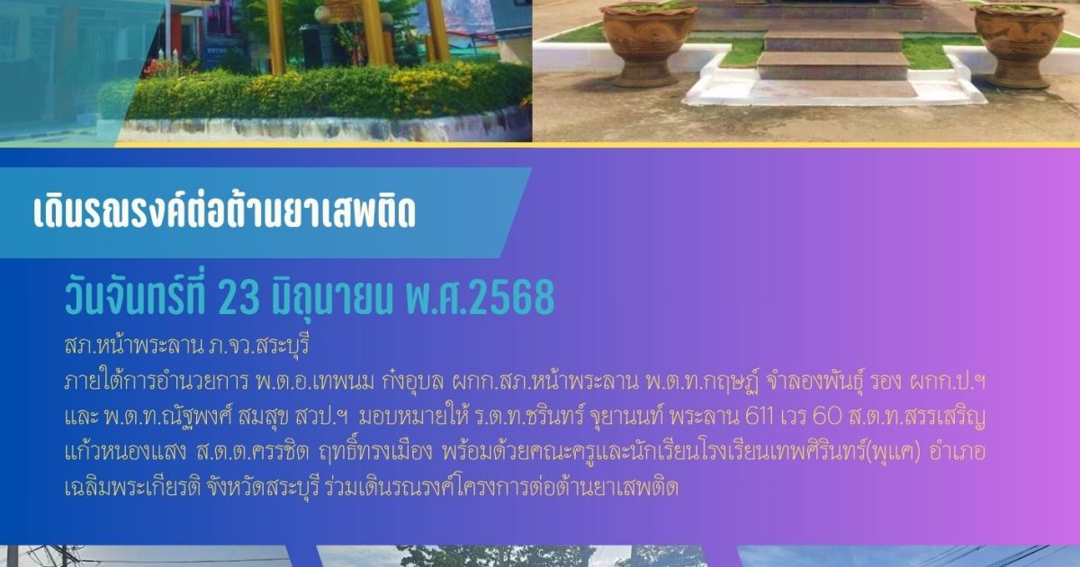 พร้อมด้วยคณะครูและนักเรียนโรงเรียนเทพศิรินทร์(พุแค)ร่วมเดินรณรงค์โครงการต่อต้านยาเสพติด