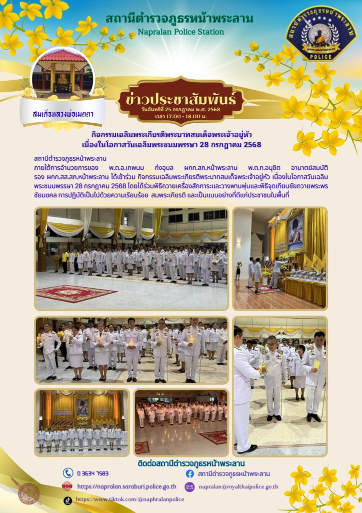 สภ.หน้าพระลาน ร่วมพิธีถวายเครื่องสักการะ วางพานพุ่มและพิธีจุดเทียนชัยถวายพระพรชัยมงคล