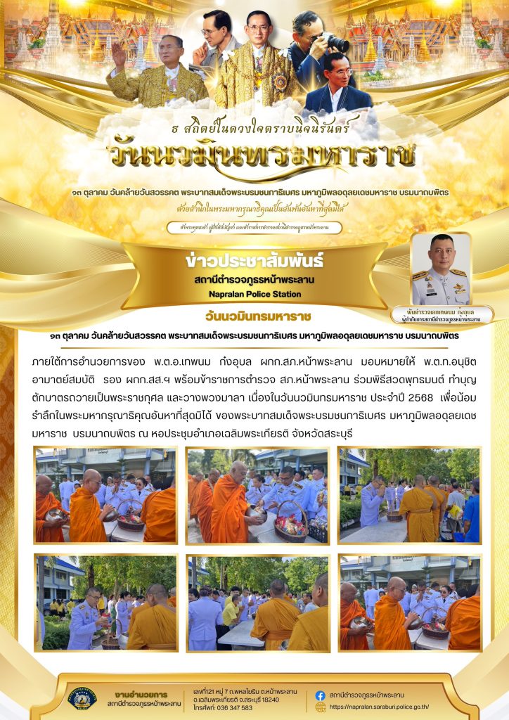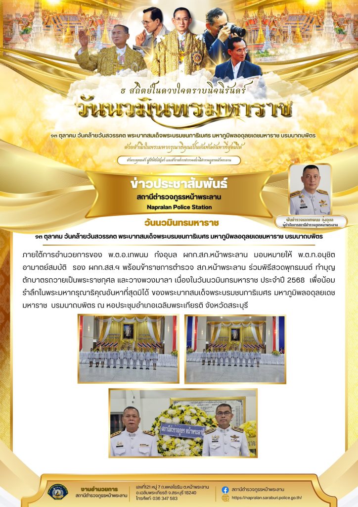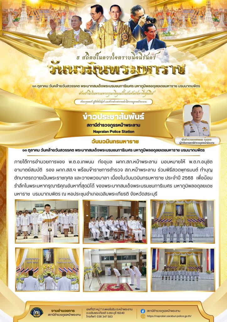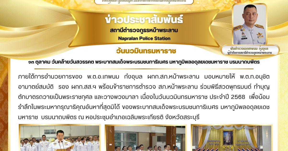 ๑๓ ตุลาคม วันคล้ายวันสวรรคตพระบาทสมเด็จพระบรมชนกาธิเบศร มหาภูมิพลอดุลยเดชมหาราช บรมนาถบพิตร 21 ตุลาคม 2568 โดย admin / ข่าวประชาสัมพันธ์,ข่าวกิจกรรม,ข่าวประชาสัมพันธ์,ข่าวประชาสัมพันธ์,ข่าวฝากประชาสัมพันธ์,ข่าวภารกิจผู้บังคับบัญชา Post Views: 39 FacebookFacebookXXLINELine