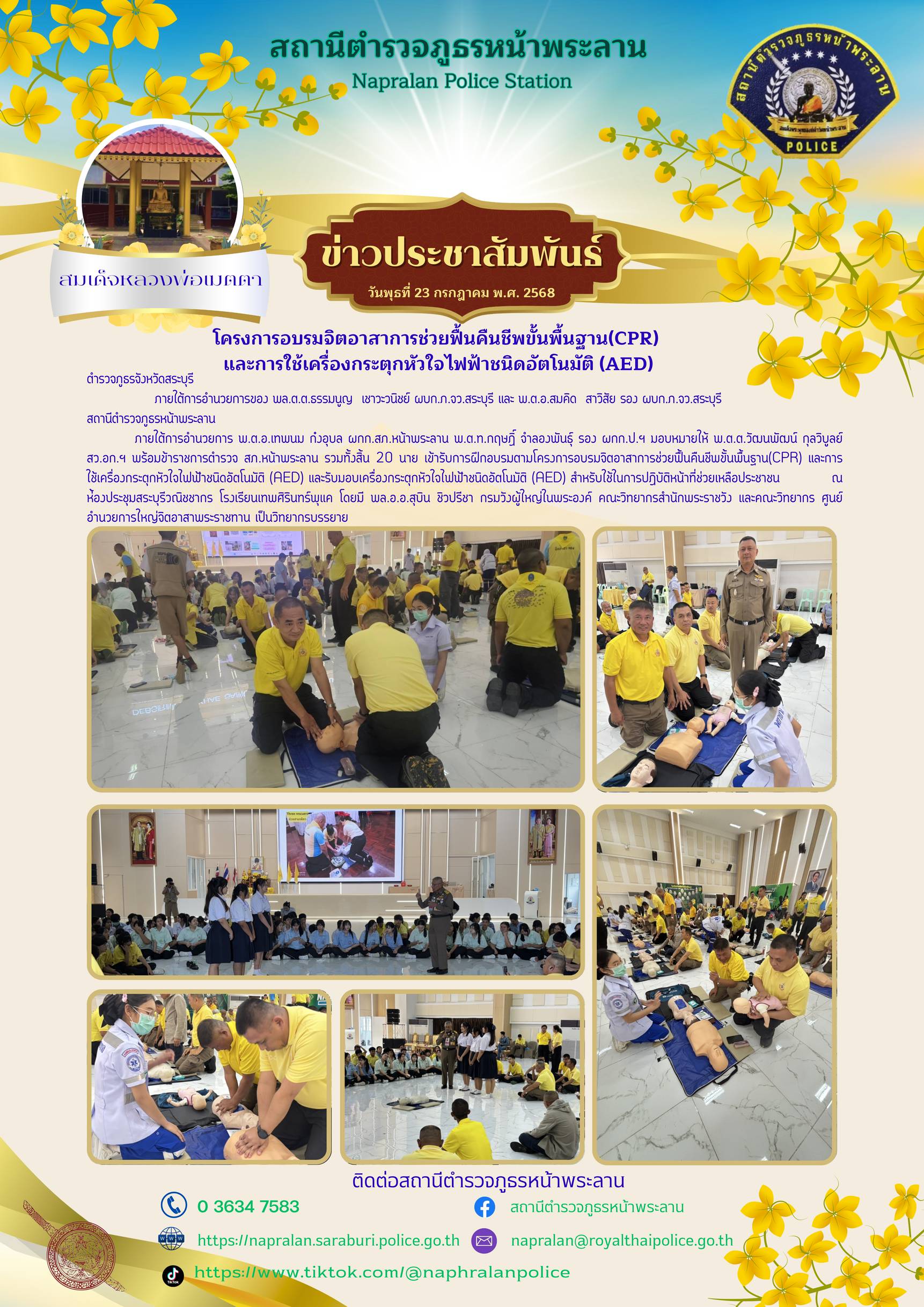 โครงการอบรมจิตอาสาการช่วยฟื้นคืนชีพพื้นฐาน CPR และการใช้เครื่องกระตุ้นหัวใจไฟฟ้าชนิดอัตโนมัติ AED