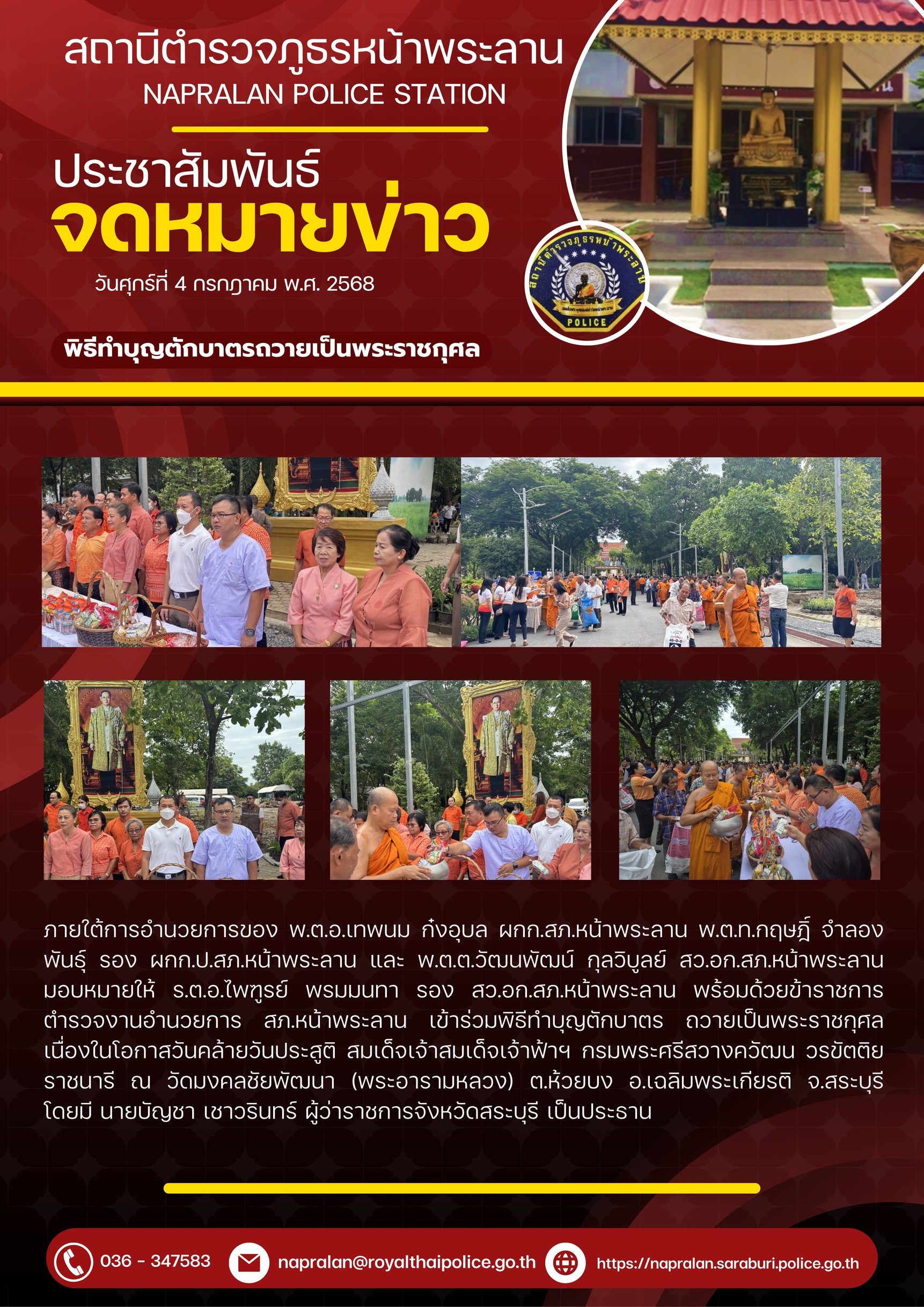 วันที่ 23 มิถุนายน 2568เวลา 07.30 น.ร.ต.ท.ชรินทร์ จุยานนท์ พระลาน 611 เวร 60ส.ต.ท.สรรเสริญ แก้วหนองแ