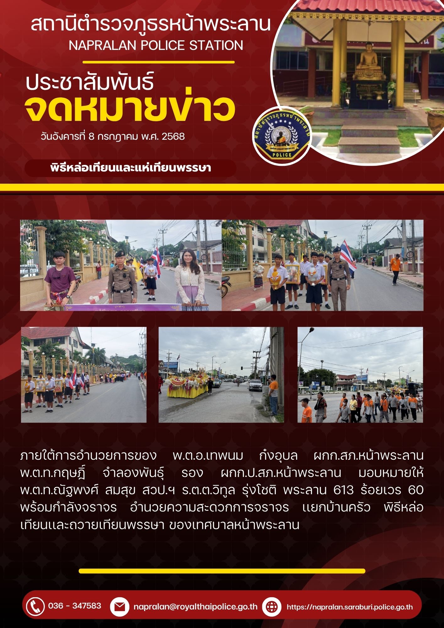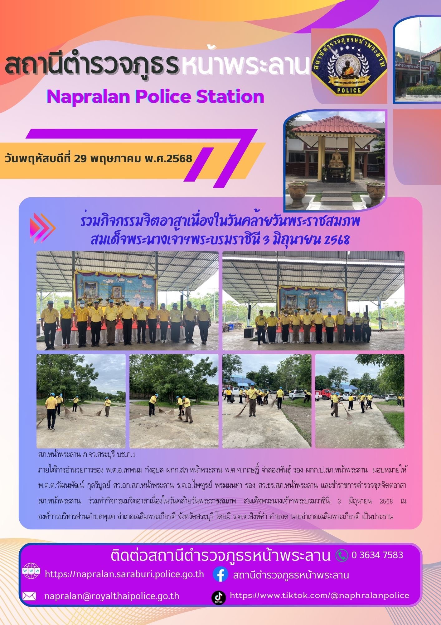 วันที่ 30 พ.ค. 68 เวลา 13.30 น. สภ.หน้าพระลาน ภ.จว.สระบุรี บช.ภ.1 ภายใต้การอำนวยการของ พ.ต.อ.เทพนม ก